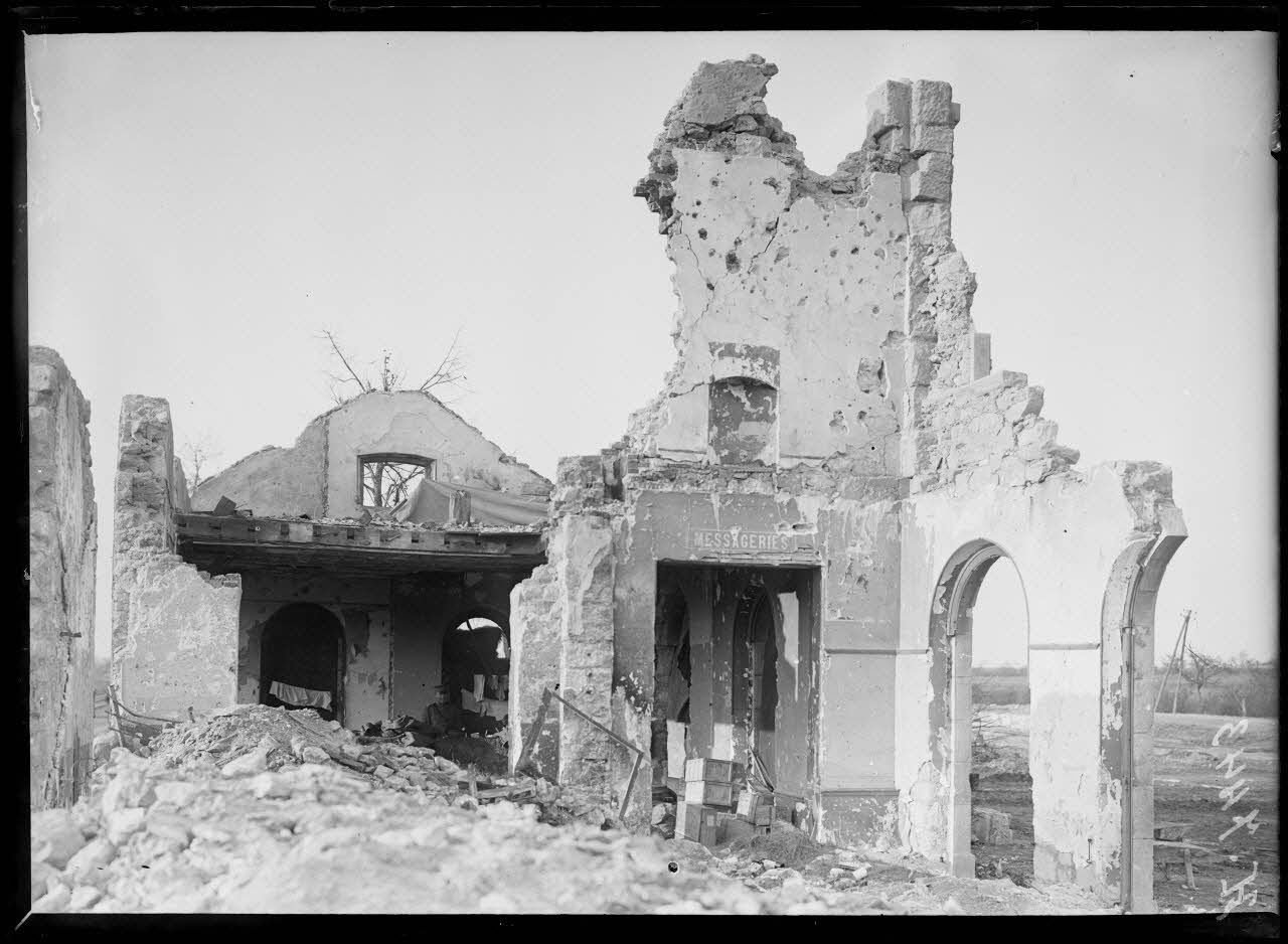 Ruines sur la ligne Metz à Sedan, novembre 1918.