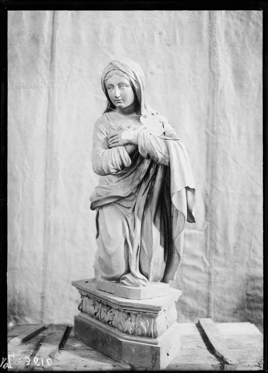- il s'agit de tableaux, de statues ou statuettes (la taille est difficile à évaluer), une série de têtes de statues, des panneaux de pierre sculptés, représentant des saints, des anges, la Vierge et le Christ, des tapisseries et certains objets de culte (reliquaire, crucifix).