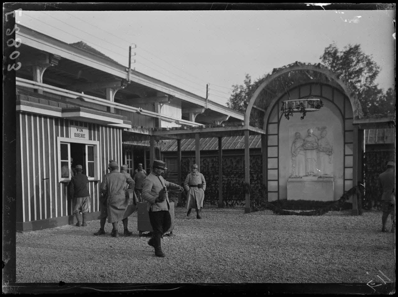 Châlons sur Marne. Buffet des permissionnaires. Fondation de la Croix Rouge américaine. A gauche, la statue du "Pinard".