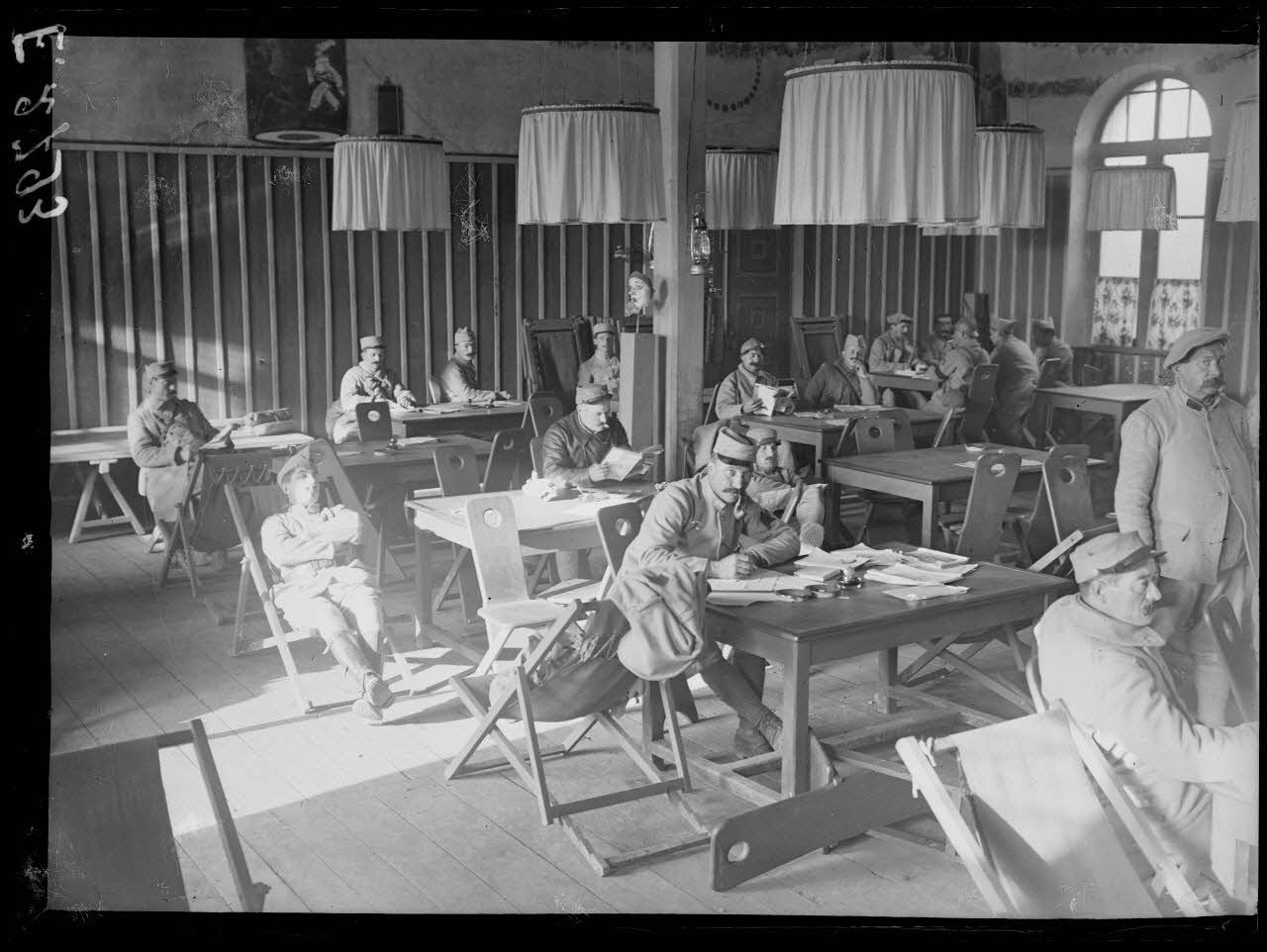 Châlons sur Marne. Buffet des permissionnaires. Fondation de la Croix Rouge américaine. Le salon de lecture. [légende d'origine]