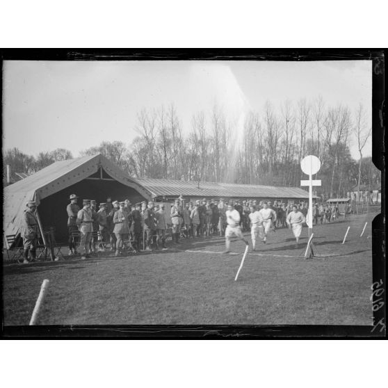Châlons-sur-Marne (Marne). Fête sportive militaire en présence du général Gouraud. Le départ d'une course à pied.