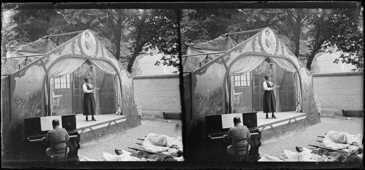 Châlons-sur-Marne (Marne). Le théâtre aux Armées en représentation à l'hôpital Sainte Croix. Madame Vaucaire. [légende d'origine]