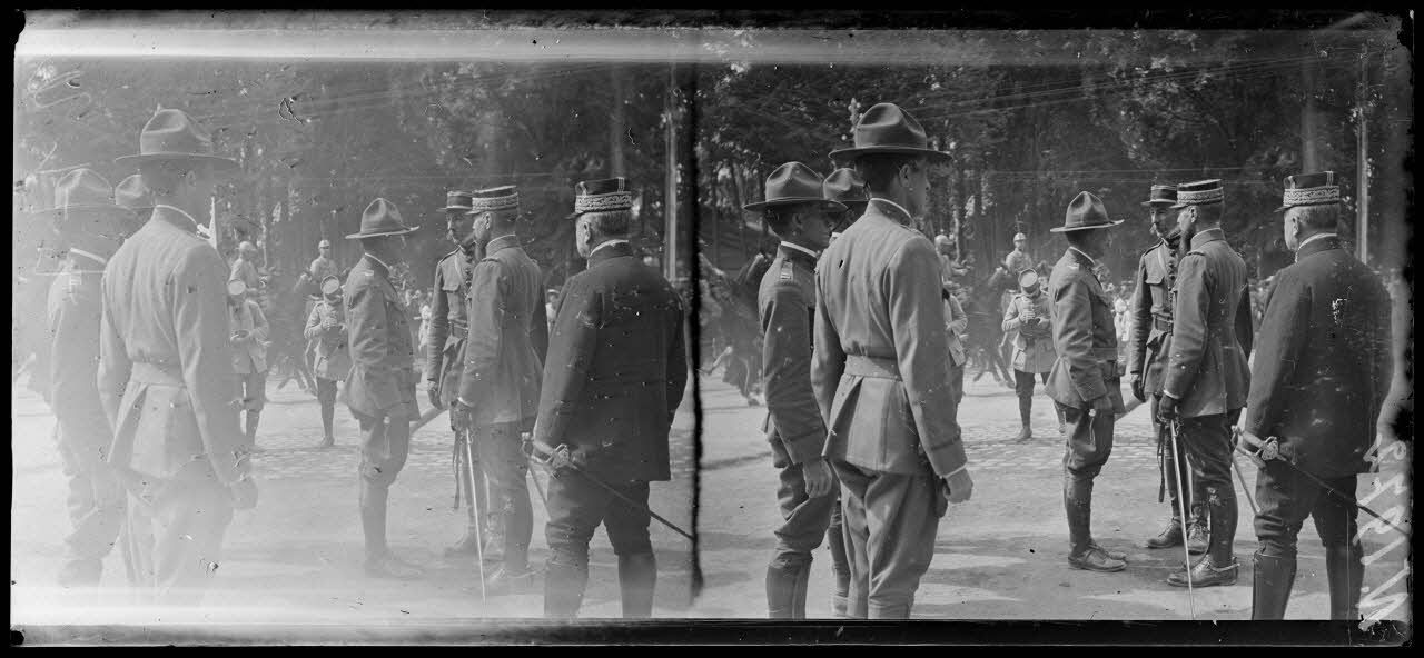 Châlons-sur-Marne (Marne). Revue des troupes américaines par le général Gouraud. Officiers américains après la revue.