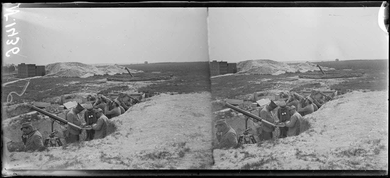 A Châlons-sur-Marne, une batterie de canons antiaériens de 75 mm assure la surveillance du ciel, à la recherche d'avions ennemis. Un système de détection acoustique (écouteurs Pognac) permet d'entendre l'arrivée des appareils. Des projecteurs sont répartis dans les champs environnants pour surveiller le ciel durant la nuit.