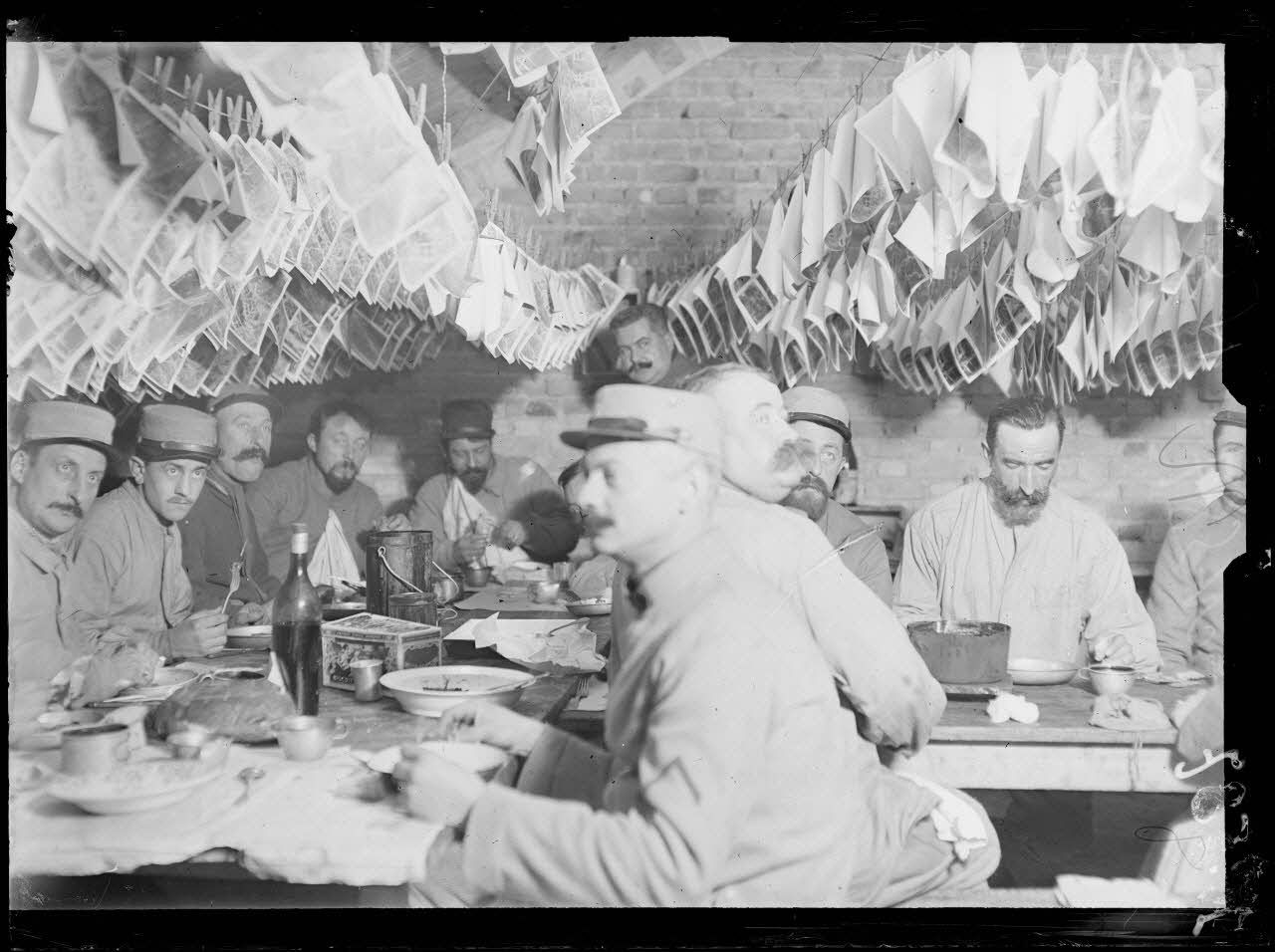 Châlons-sur-Marne, section aérienne de la 4e armée. Le repas parmi les photos au séchage. [légende d'origine]