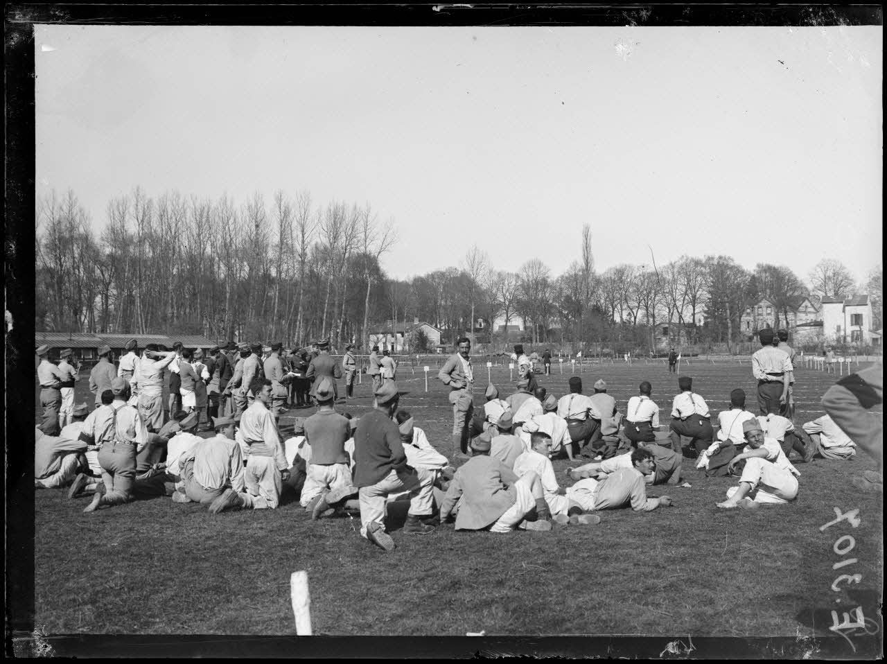 Châlons sur Marne. Sports de guerre. La course à pied, les coureurs passent devant les tribunes.