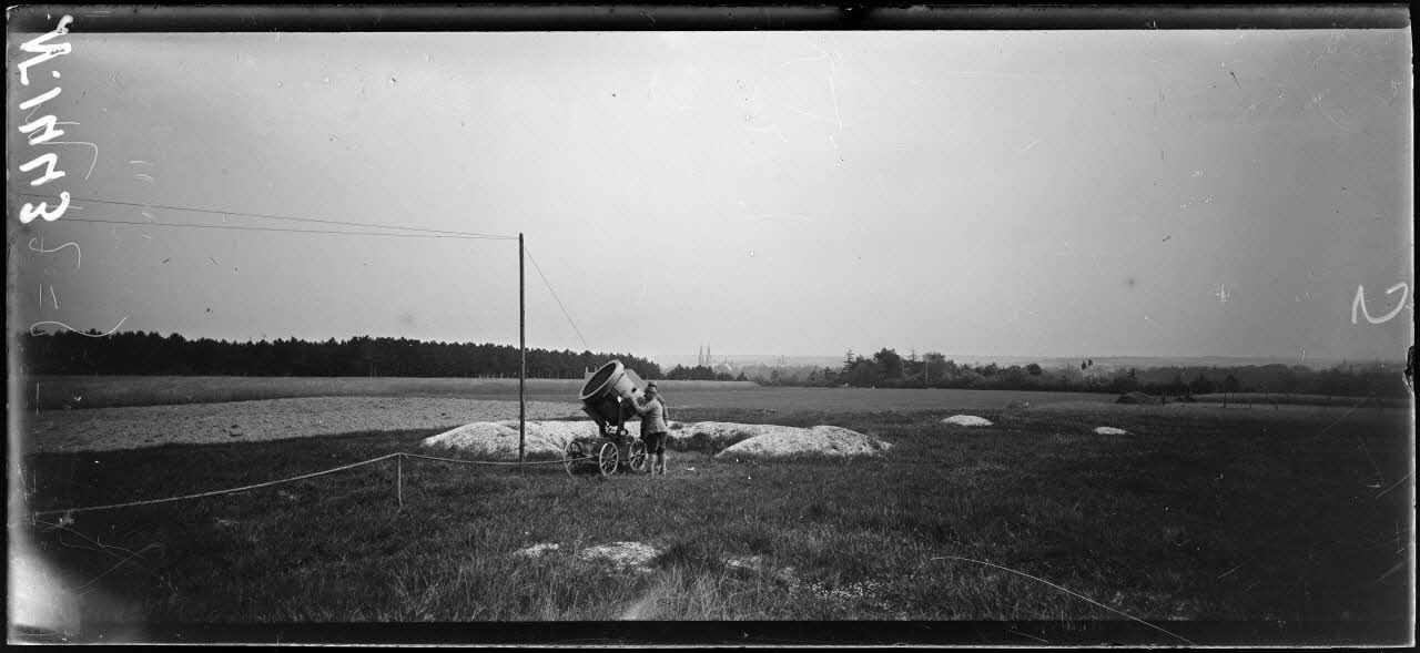 Vadenay (Marne). Ecole d'aérostation. Mesure de la tension du câble (Mai 1917).