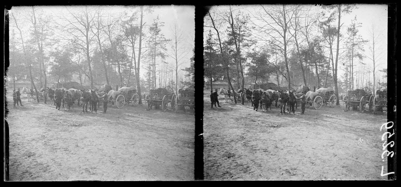 - à Châlons-sur-Vesle, (SPA 66 L 3257 à 3262), une compagnie de mitrailleurs montant en ligne fait une halte, la compagnie en exercice dans les bois (des mitrailleuses Hotchkiss modèle 1914 sont en position de tir), un convoi de ravitaillement hippomobile à l'arrêt.
