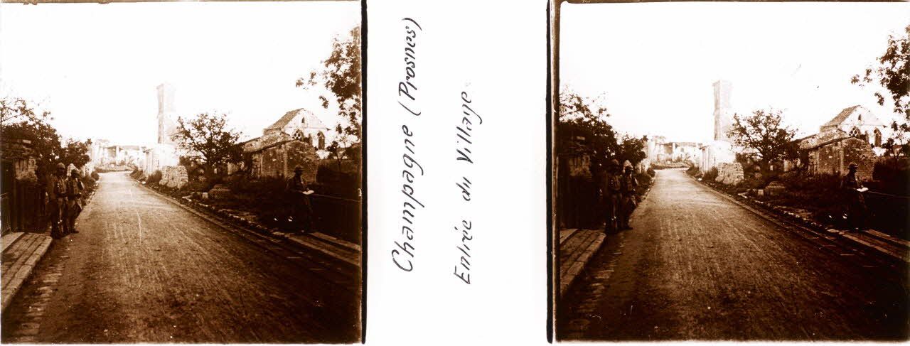 Champagne (Prosnes). Le Village et tranchées de 1ère ligne.