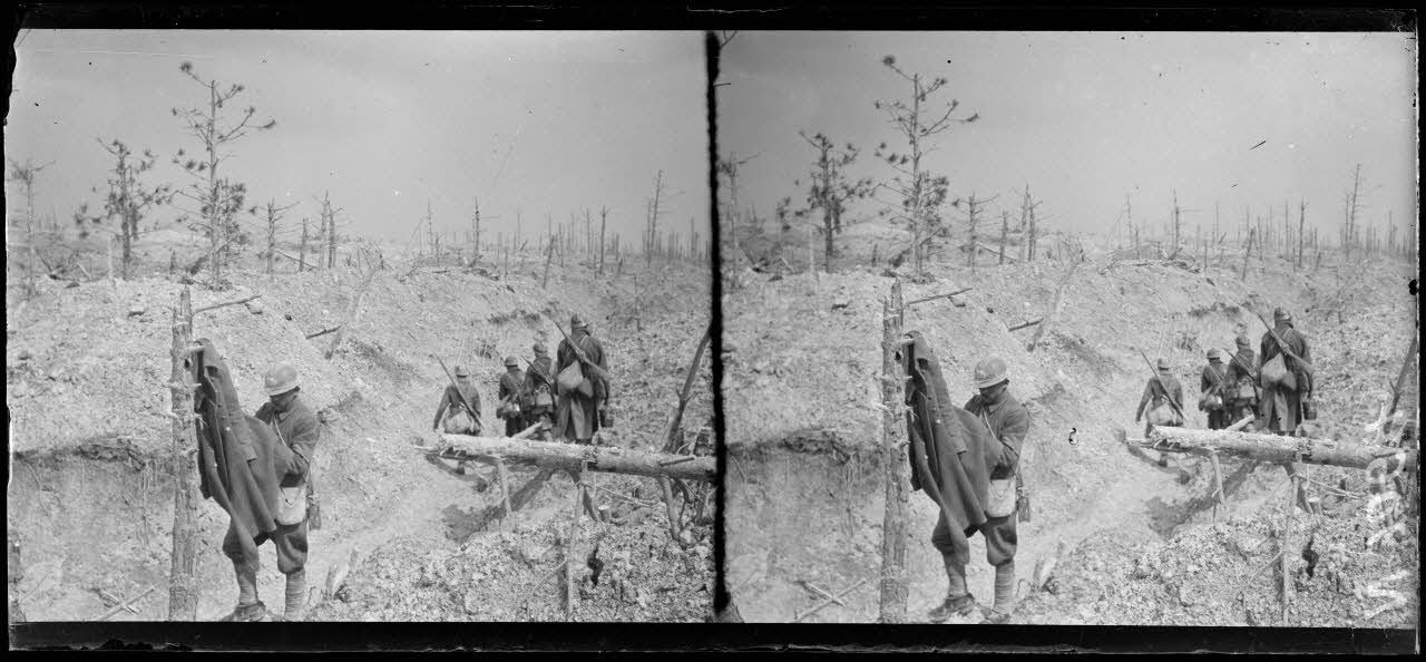 Le reportage montre des tranchées abandonnées, un panneau d’orientation, l’entrée de sapes, des cadavres allemands, un petit mortier et un affût de mitrailleuse MG abandonnés sur le terrain, le réseau de barbelés détruit et l’évacuation de blessés français et allemands sur des brancards. Le caméraman Charles Martel, qui accompagne Pierre Pansier, est visible de loin sur un cliché (SPA 27 N 1061).