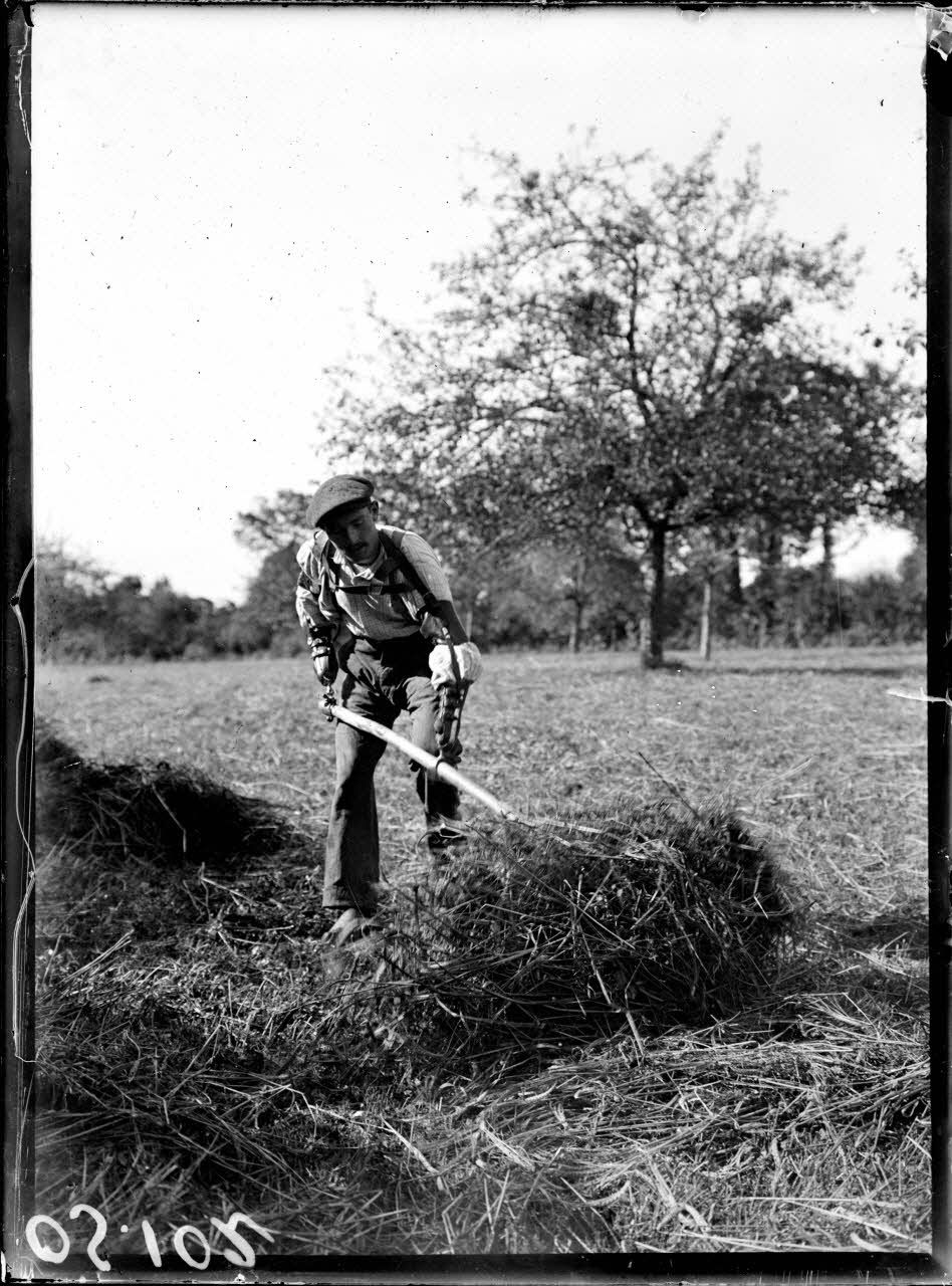 Champcervon (Manche). Le lieutenant Ledraus amputé des deux mains aux travaux des champs. [légende d'origine]