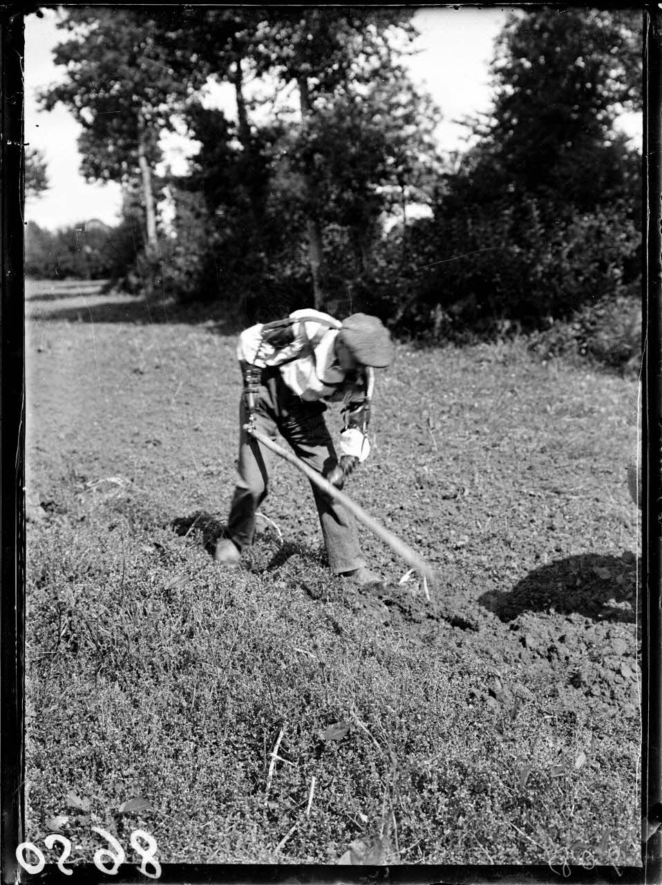 Champcervon (Manche). Le lieutenant Ledraus amputé des deux mains aux travaux des champs. [légende d'origine]