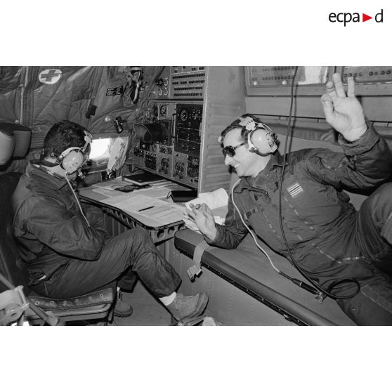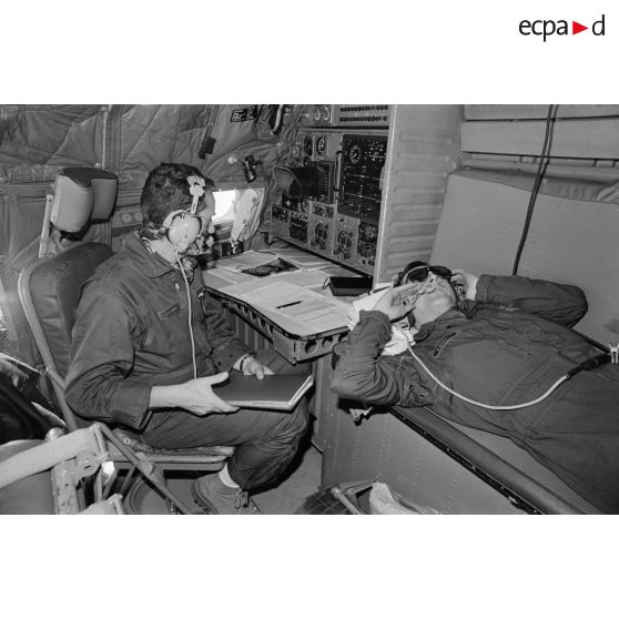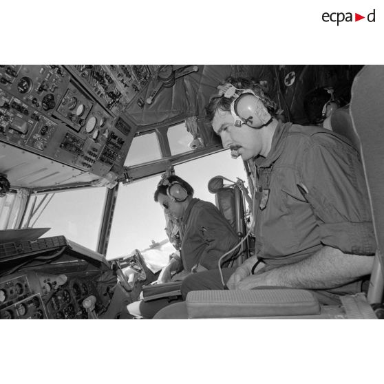 Le commandant de bord d'un Transall à destination du Tchad, dans sa cabine.