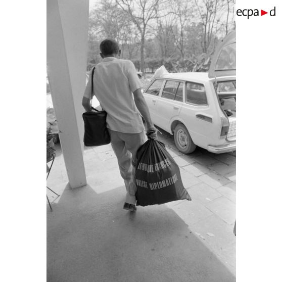 - évacuation de l'ambassade de France par le personnel qui charge les véhicules de divers matériels et de la valise diplomatique ;