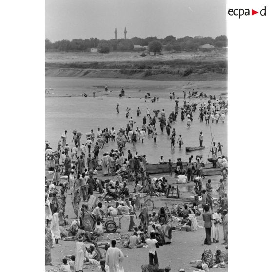 Réfugiés tchadiens qui fuient en masse N'Djamena en traversant le fleuve Chari et le fleuve Logone à pieds ou en pirogue.