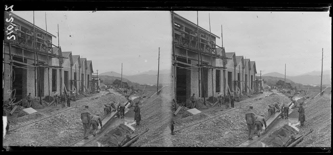 Château-Arnoux (Basses-Alpes). Chantier de Saint Auban. Les prisonniers au chantier de construction. [légende d'origine]