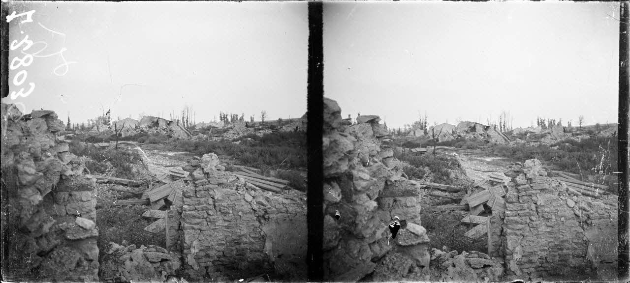 - à Chattancourt : les ruines du village (SPA 59 L 2803/2806/2807/2842) dont une vue en plongée (SPA 59 L 2837) et l'église (SPA 59 L 2838), deux soldats allemands transportent un blessé français sous les yeux des ses camarades (SPA 59 L 2841) ;