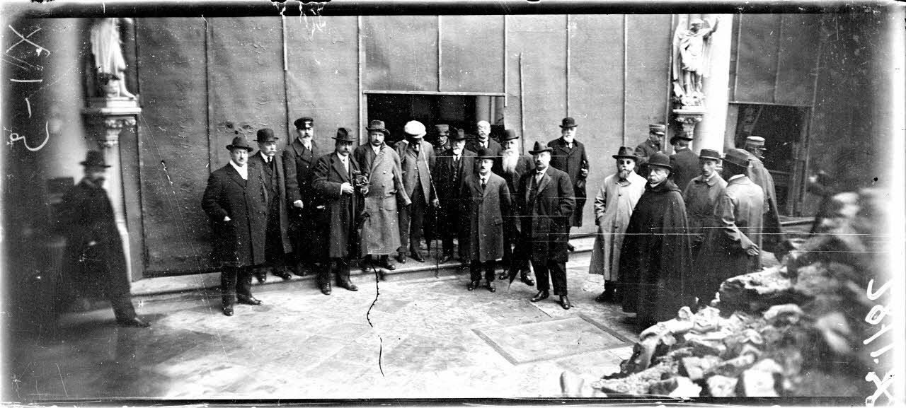 Chauny (Aisne) la mission italienne devant l'église. [légende d'origine]
