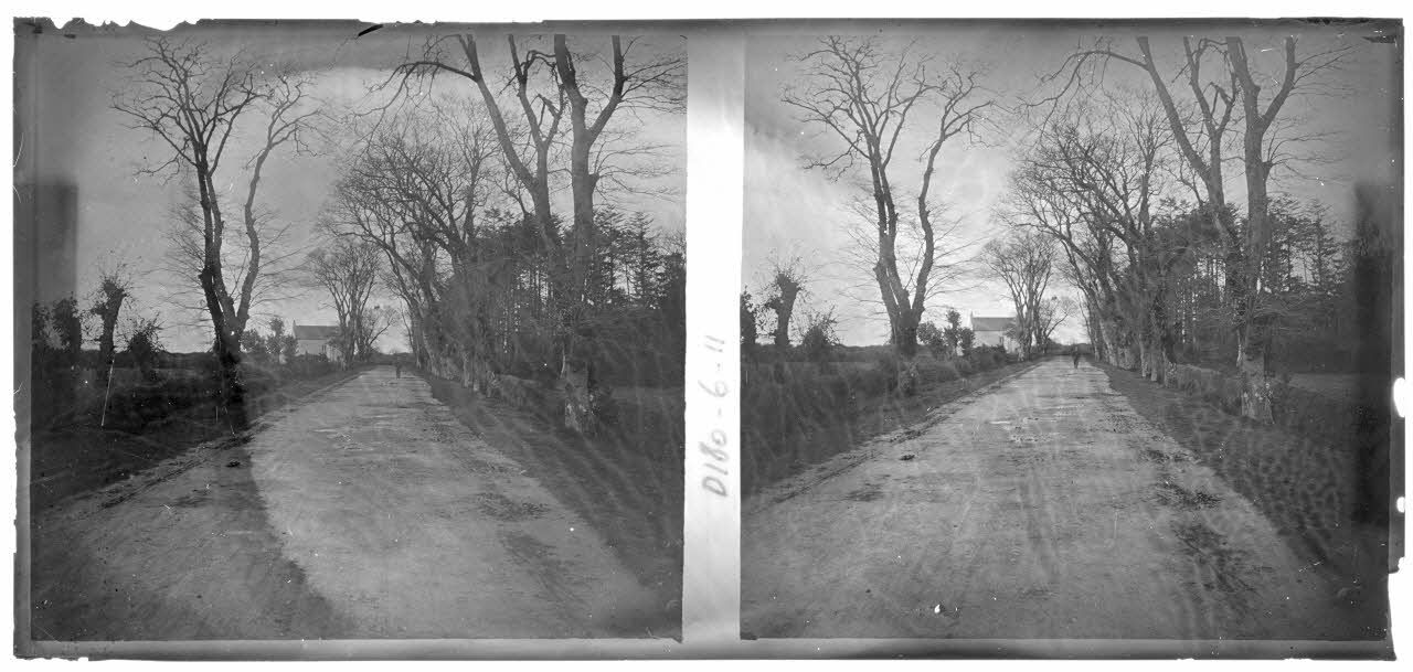 Un chemin avec une chapelle bretonne à l'arrière-plan photographié durant le stage de formation du lieutenant Emile Coquibus en Bretagne.