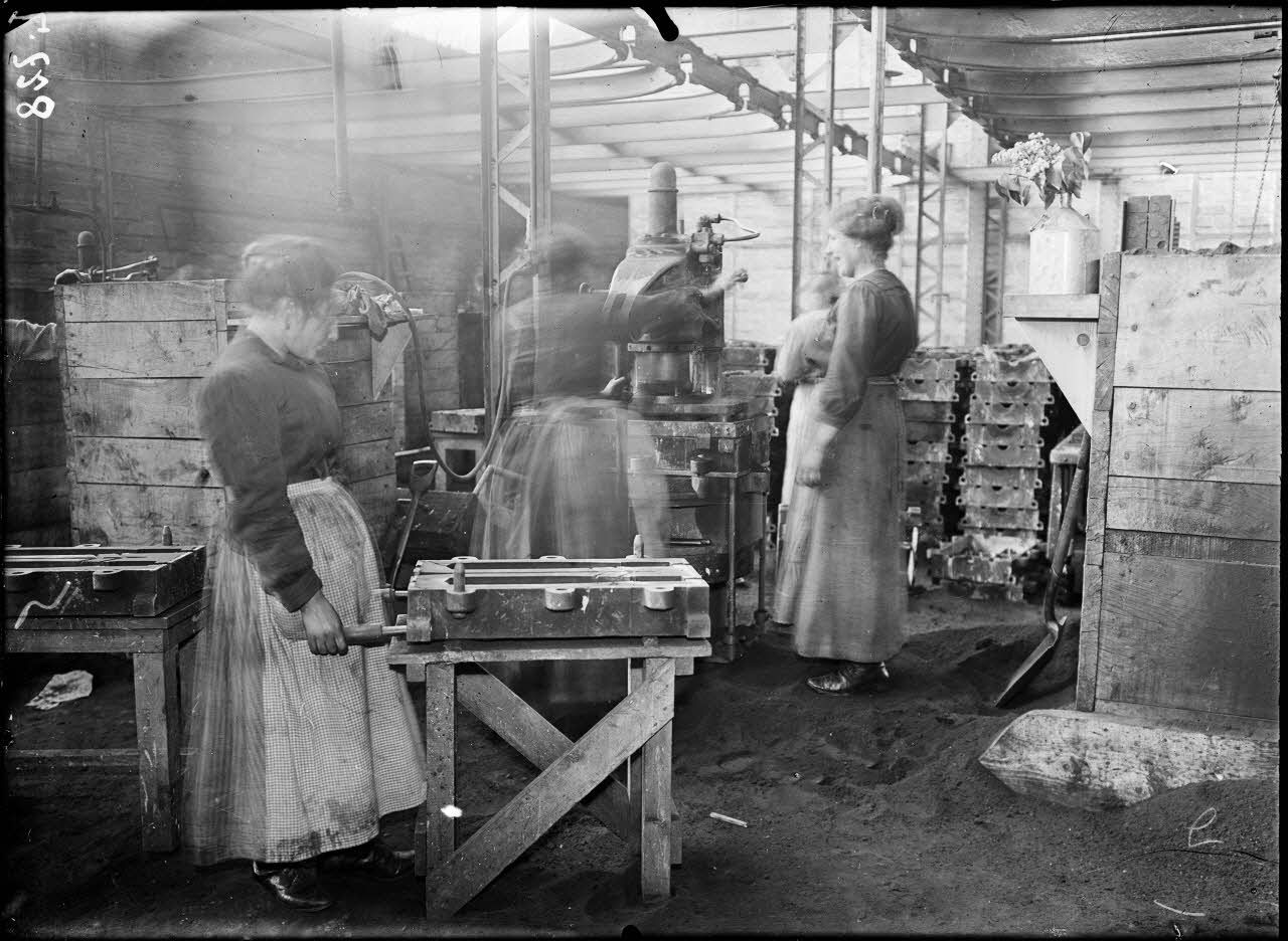 Cherbourg. Usines Simon Frères. Fabrication des noyaux pour le moulage des obus de 95.