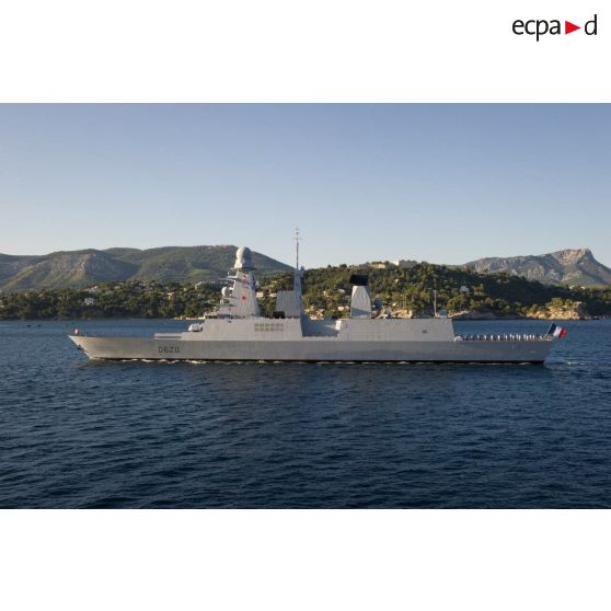 Passage de la frégate de défense aérienne "Chevalier Paul" (D621) lors de la 9e revue navale.