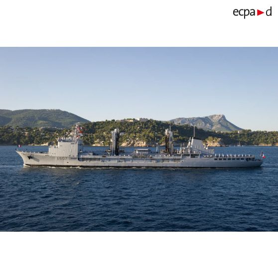 Le pétrolier ravitailleur Meuse (A 607) lors de la 9e revue navale.