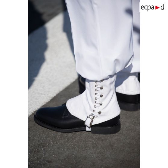 Gros plan des guêtres d'un membre d'équipage lors de la commémoration des 70 ans du débarquement de Provence.