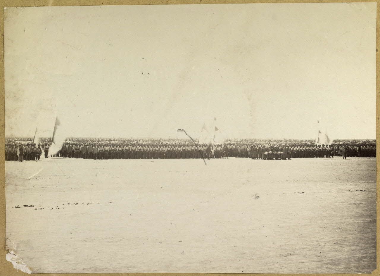 [Chine, 1888. Manœuvres de l'armée du Petchili sur le terrain de manoeuvre du camp d'artillerie de Kium Ling Tchang].