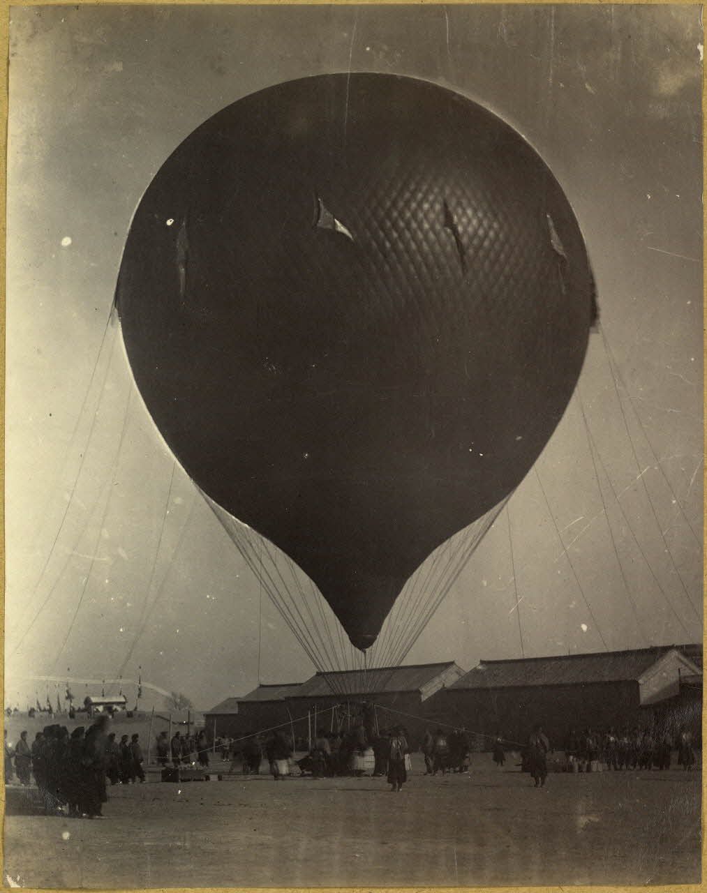 [Chine, 1888. Un ballon d'observation manoeuvré par des soldats d'une école militaire du Petchili, dans les environs de Tien-Tsin].