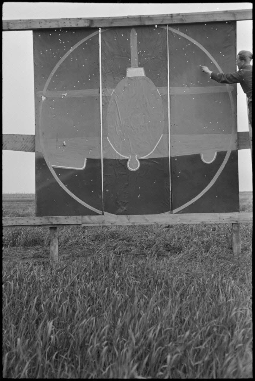 Cible lors d'un exercice de tir à la mitrailleuse MG-131 sur un terrain d'aviation occupé par le I. /Lehrgeschwader I.