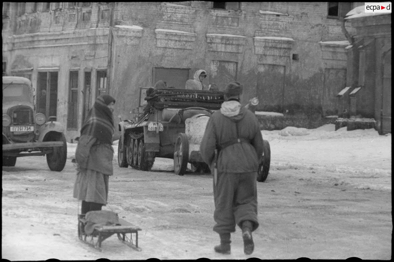 Circulation dans la gare de Vitebsk (Witebsk), ici une Peugeot Typ DK 5 au service de la Wehrmacht.