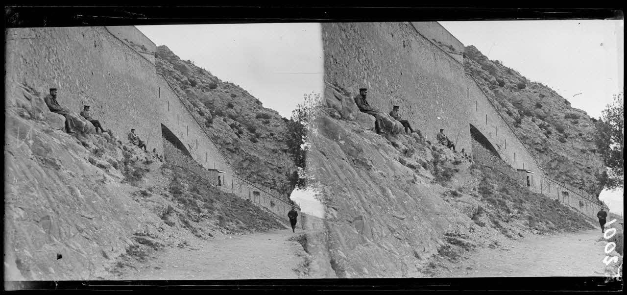 Citadelle d'Entreveaux (Basses-Alpes). Camp d'officiers allemands prisonniers. La promenade des officiers prisonniers.