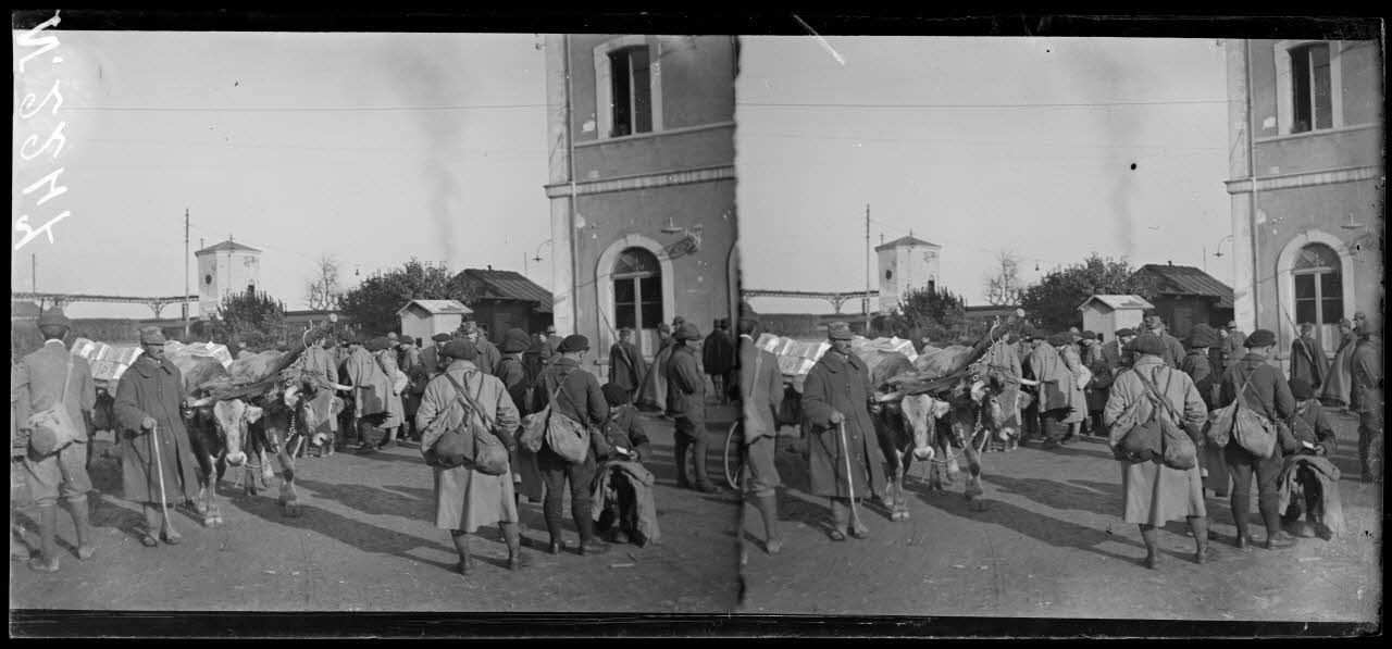Citadelle (Italie). Chasseurs alpins français devant la gare (18-1-18).