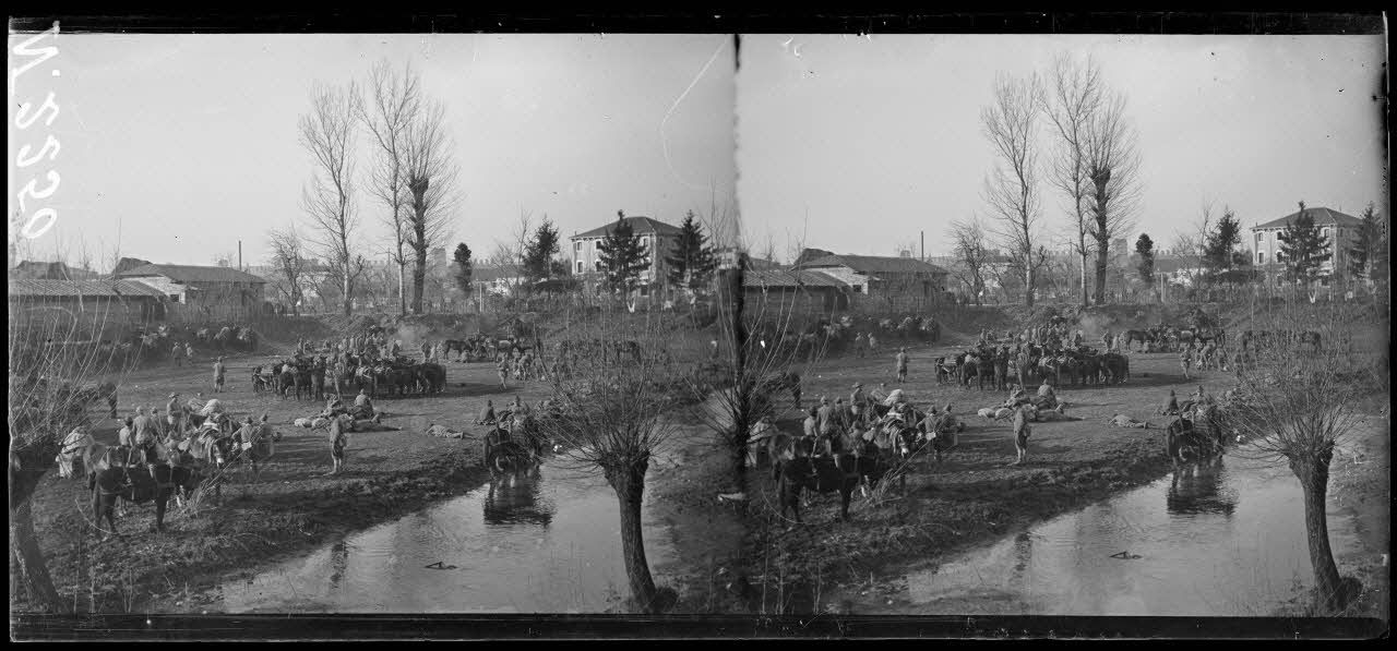 Vicence (Italie). Revue des troupes italiennes par le général Maistre et le général Pecori Giraldi. Arrivée du général Maistre et du général Pecori Giraldi (3-2-18).
