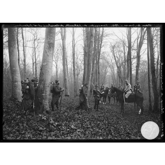 80x110, échange de renseignements, dans la Somme, 1914, Rencontre de patrouilles de cavalerie et d'infanterie.