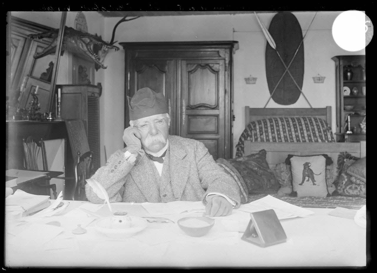 Clemenceau, dans sa chambre à coucher à Bélébat en Vendée. [légende d'origine]