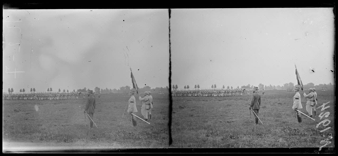 - À Condé-sur-Marne (Marne, le 13/08/1917), le général Gouraud, chef de la 4e armée, remet la cravate de commandeur au colonel Retrouvé, commandant l'infanterie de la 8e division d'infanterie (8e DI). Le général passe ensuite les troupes en revue. A ses côtés se tiennent le général Putz, commandant le 4e corps d'armée, le général Aldebert, commandant la 8e division d'infanterie, et le général Goigoux, commandant la direction des étapes et des services du groupe d'armées du centre.