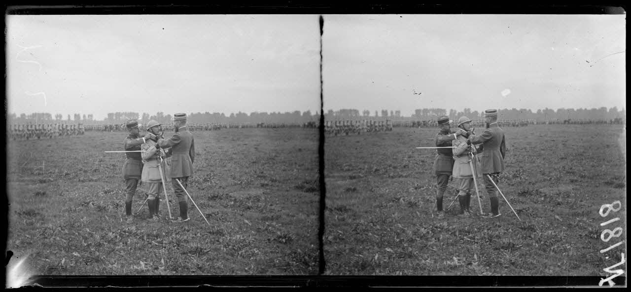 - À Condé-sur-Marne (Marne, le 13/08/1917), le général Gouraud, chef de la 4e armée, remet la cravate de commandeur au colonel Retrouvé, commandant l'infanterie de la 8e division d'infanterie (8e DI). Le général passe ensuite les troupes en revue. A ses côtés se tiennent le général Putz, commandant le 4e corps d'armée, le général Aldebert, commandant la 8e division d'infanterie, et le général Goigoux, commandant la direction des étapes et des services du groupe d'armées du centre.