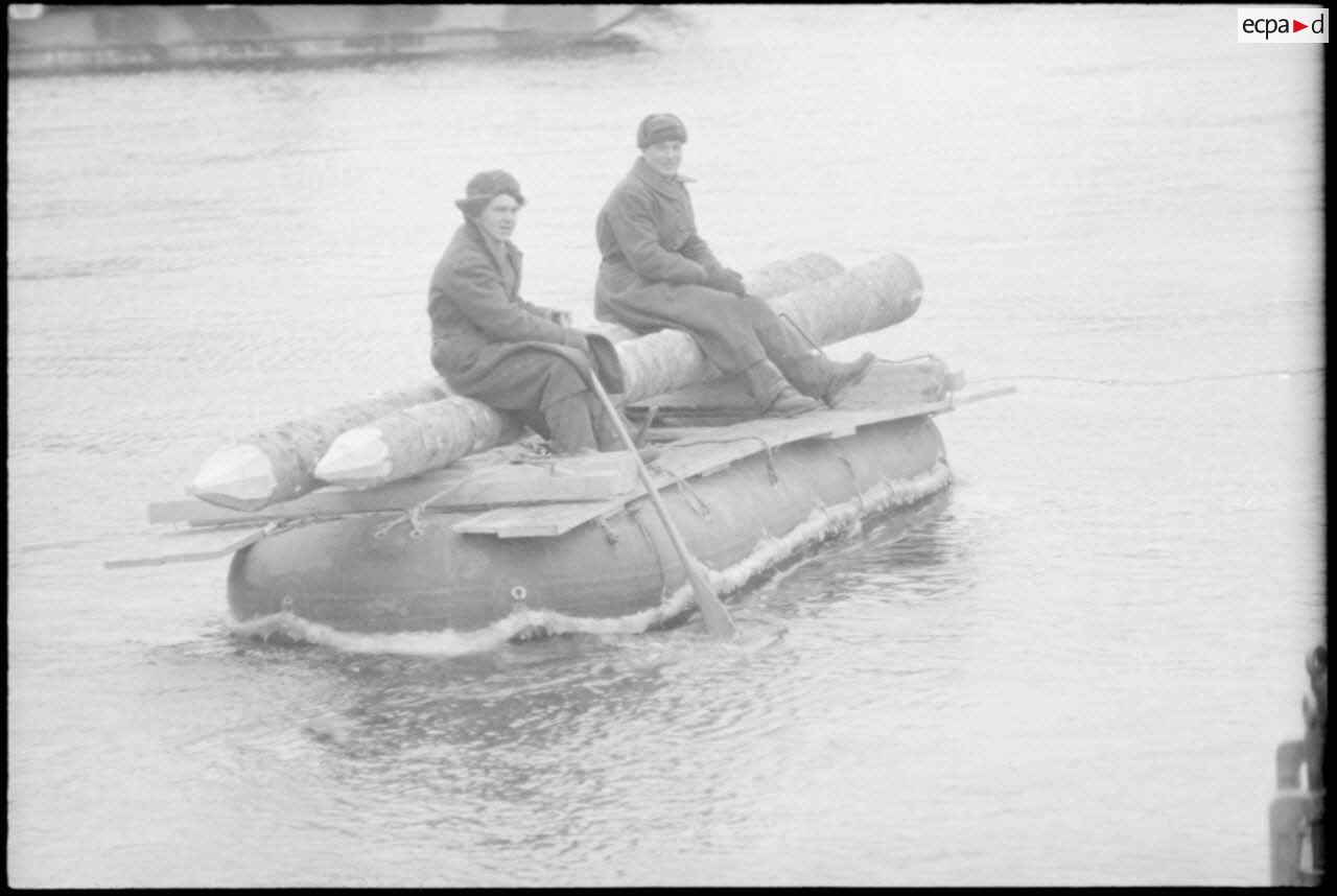 Construction d'un pont par l'Organisation Todt avec le soutien de prisonniers soviétiques.