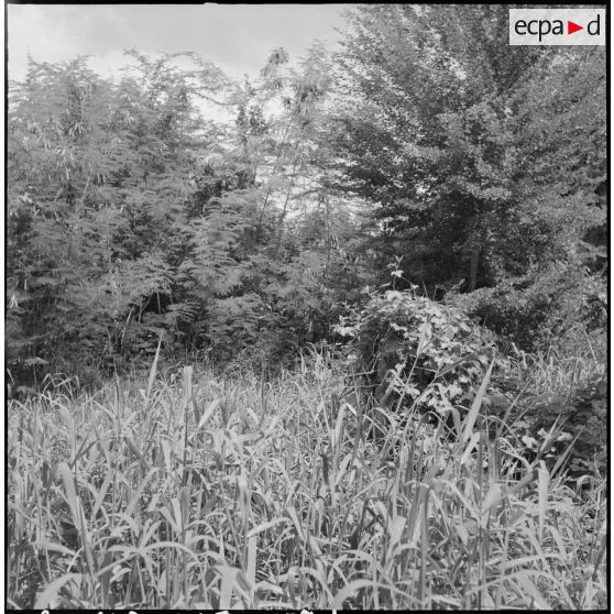 L'instruction au mortier de 60 mm aux abords du poste par la 3e compagnie du 6e BCC (Bataillon de Chasseurs Cambodgiens).