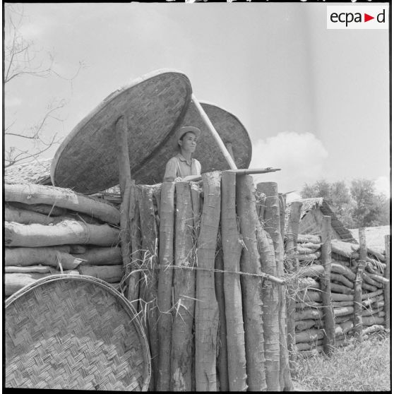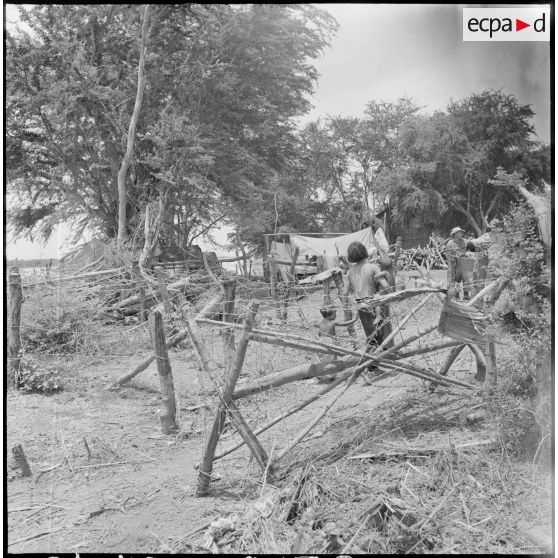 Le premier travail de construction d'un poste : la mise en place du réseau de barbelés.