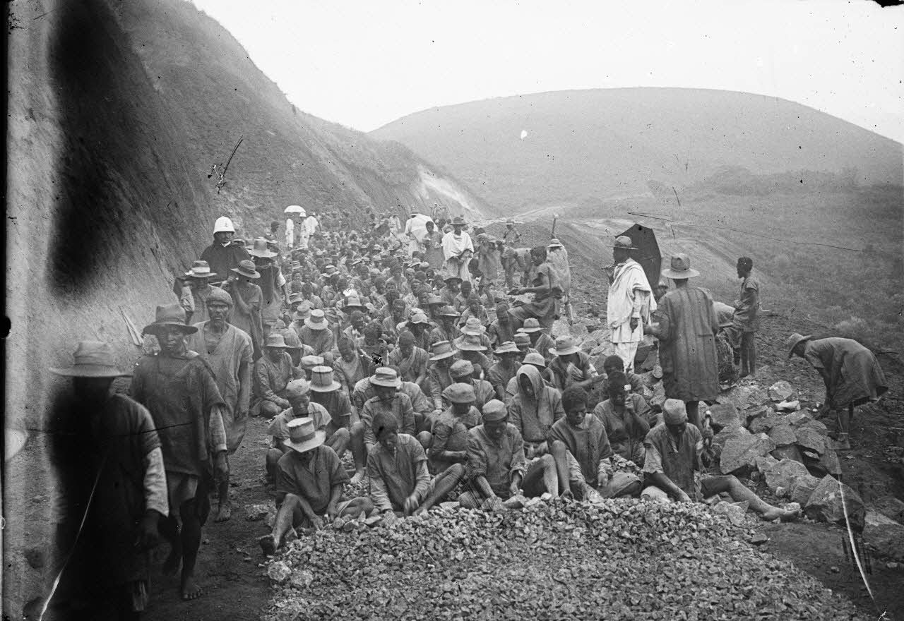 Edgard Imbert (1873-1915), sous-lieutenant de l'infanterie coloniale et photographe est en poste à Madagascar du 10 février 1900 au 23 avril 1902. Il photographie, au cours du trajet entre Tananarive et Fianarantsoa, les paysages, les villages, la population et les chantiers de construction de routes.