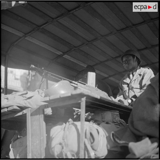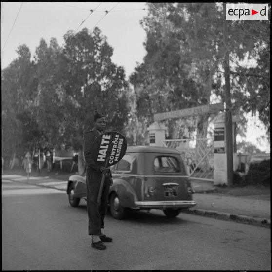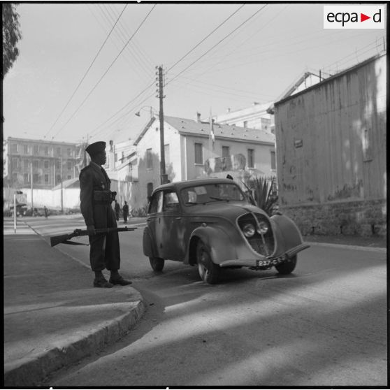 Au niveau du stade Mingasson, dans le quartier de la caserne d'Orléans, un tirailleur du 13e RTS procède à un contrôle autoroutier.