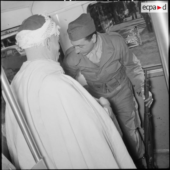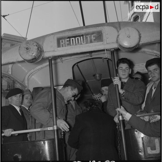 Suite aux attentats d'Alger [1], la 10e Division parachutiste (DP) met en place un dispositif pour sécuriser la ville et démanteler le réseau des indépendantistes algériens. Son action se fonde sur les directives du préfet Baret qui, à la demande de Robert Lacoste, ministre résident, a donné le pouvoir de police au général Massu, chef de la 10e DP. L'action des parachutistes comprend le contrôle des habitants et l'isolement de la Casbah afin de stopper les agissements du Front de libération nationale (FLN). Pour les aider, des Algériens (réservistes atteints par la limite d'âge) ont revétus l'uniforme des Unités territoriales (UT) et s'occupent de vérifier l'identité des usagers qui prennent le bus.