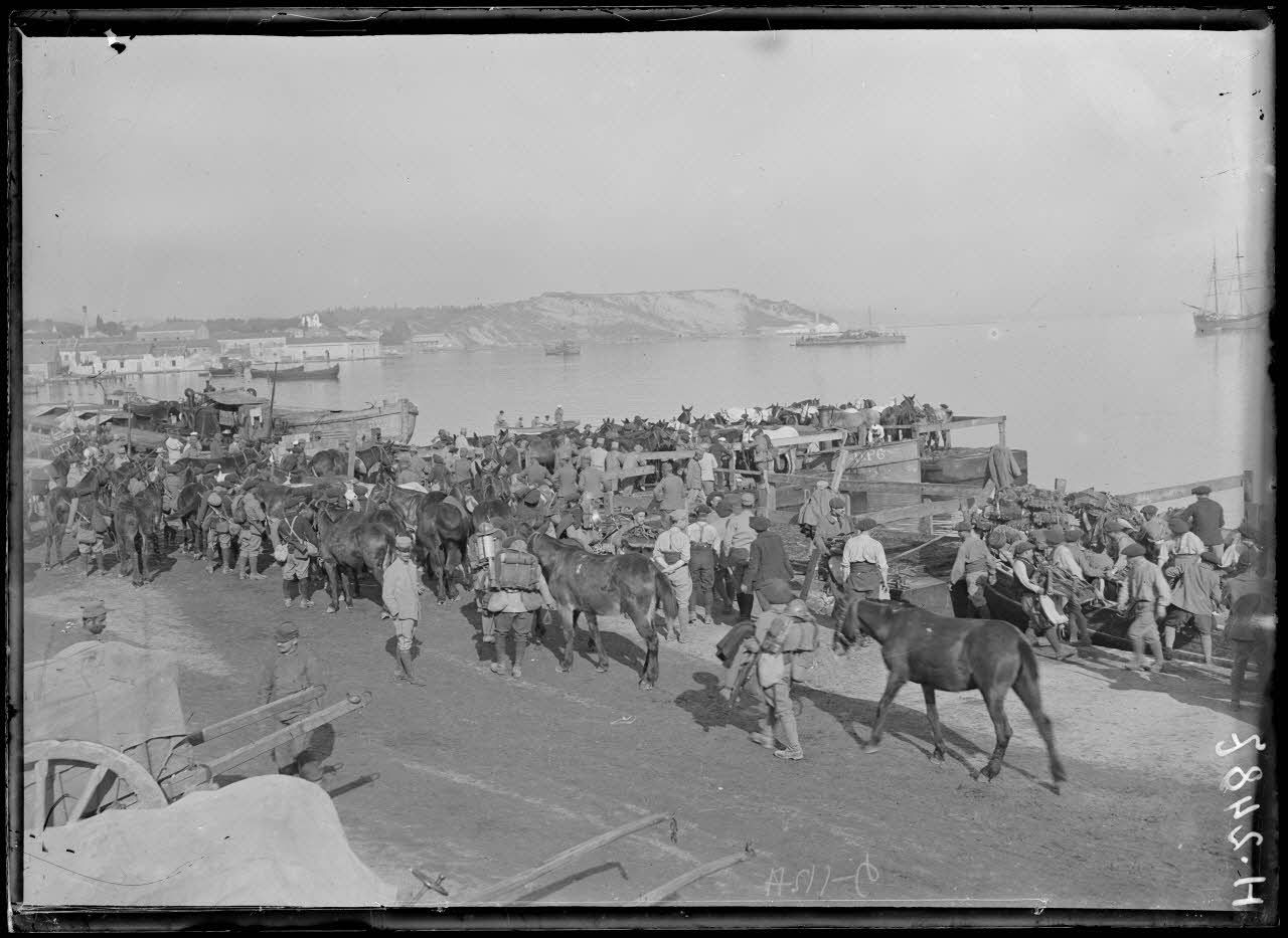 Corfou. Embarquement de mulets du 6e alpin. [légende d'origine]