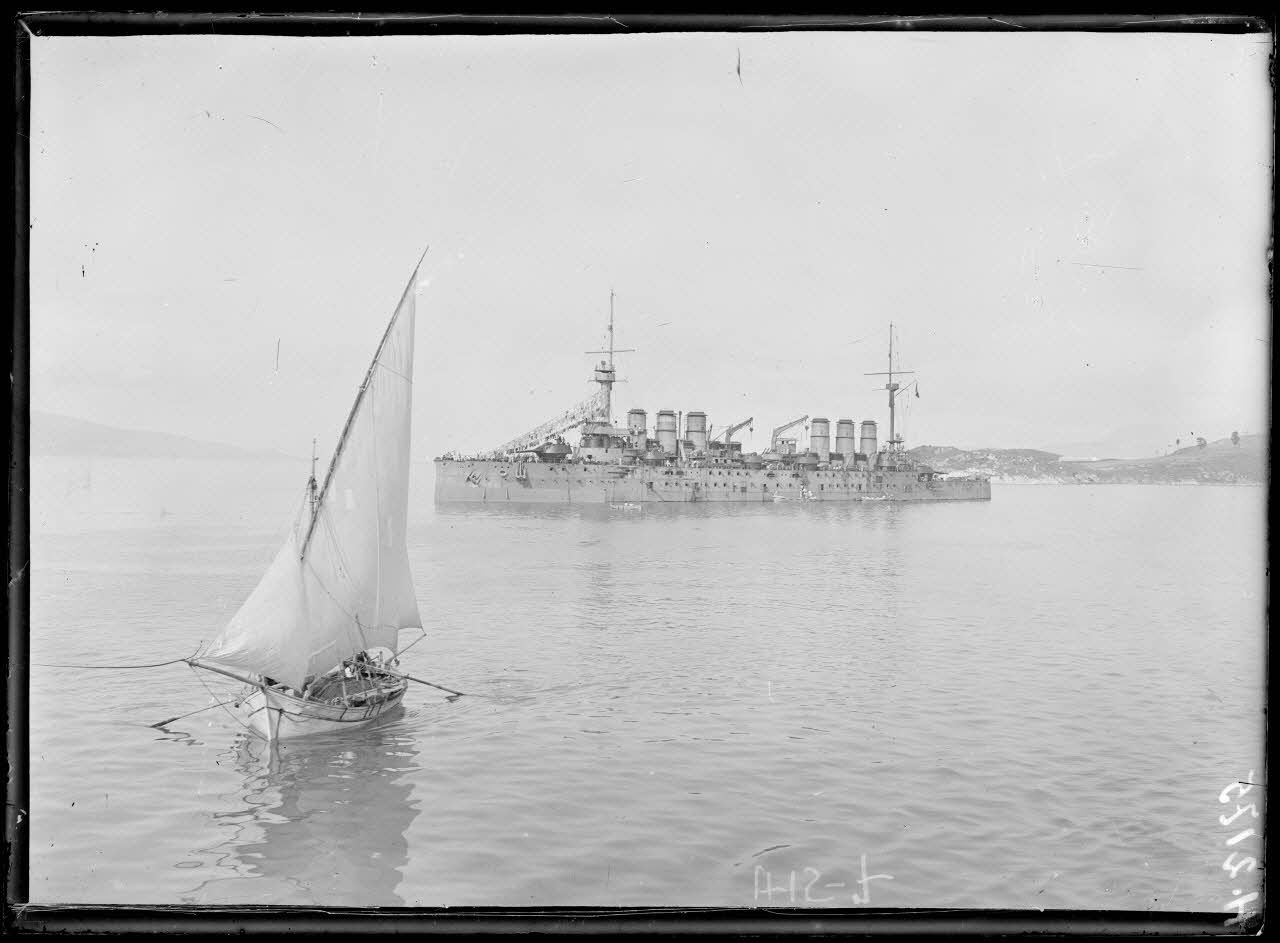 Le 17 mars dans la rade de Corfou, des réfugiés serbes, dont des femmes, s'apprêtent à partir pour la France. Ils sont transbordés du "Miquelon" à l'"Abda". Plus loi, le cuirassé "Ernest Renan" et le "Shamrock" sont dans la rade. Des marins Chambon pompent l'eau de la cale du Flamberge inondé.