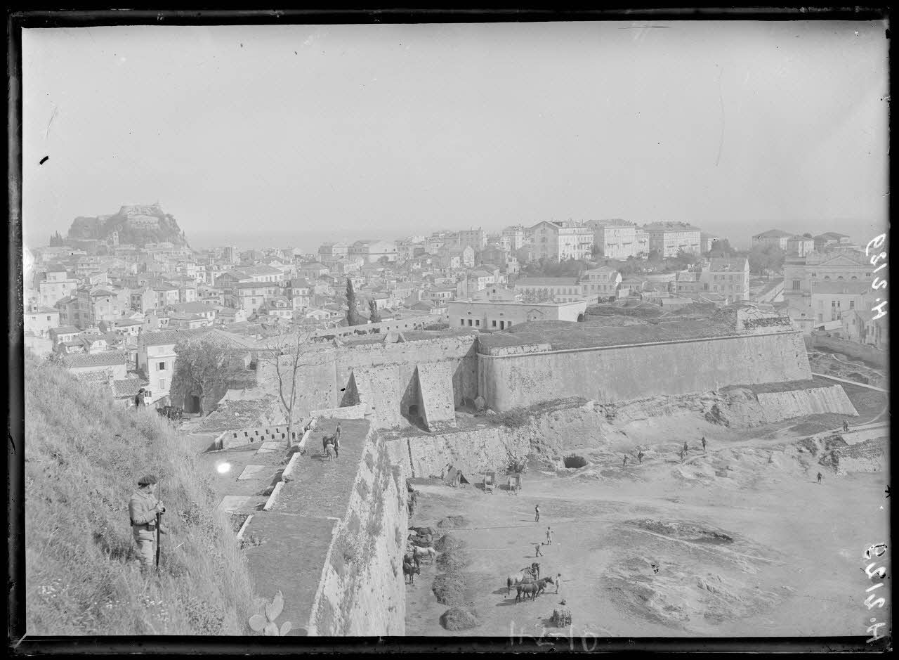 Corfou. Le fort neuf et les fossés du fort au fond, la ville et la citadelle. [légende d'origine]