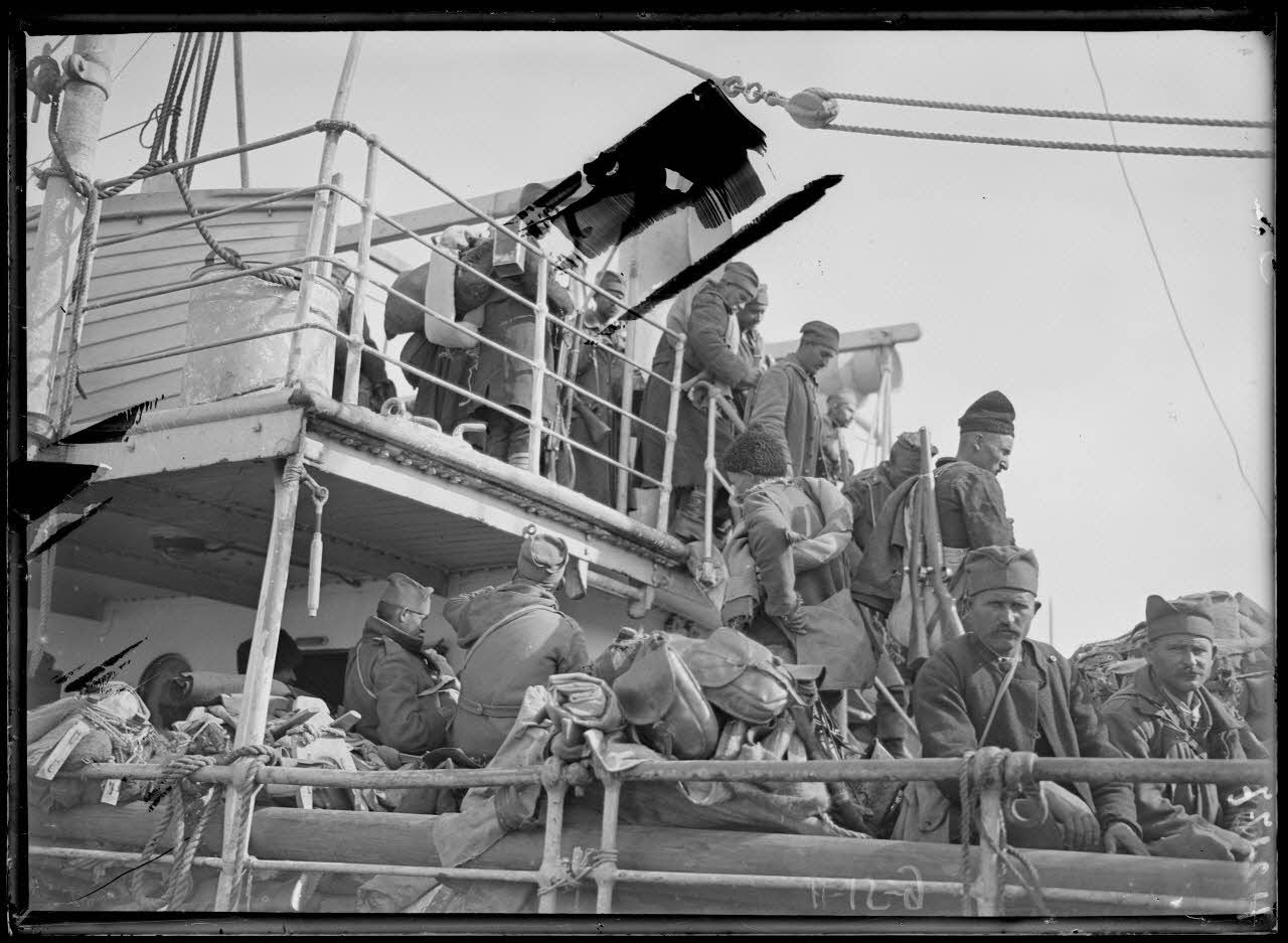 Corfou. Les troupes serbes venant de Vallona sont transbordées du Cordava pour être dirigés sur le camp de Govino.