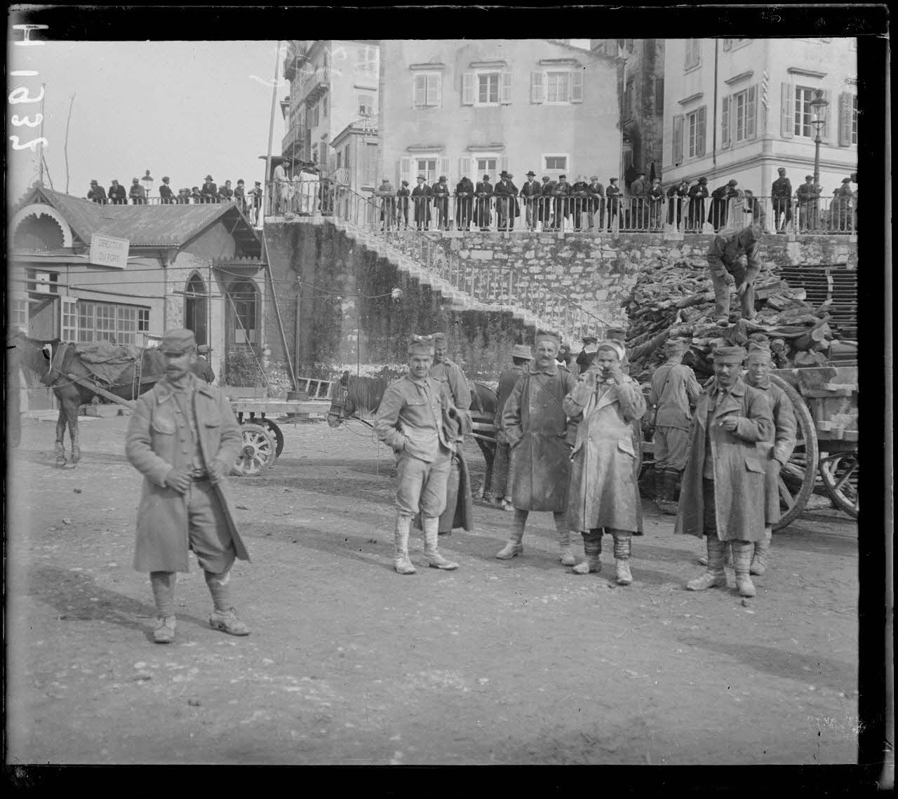 Corfou. Habitants de Corfou regardant travailler les soldats serbes.