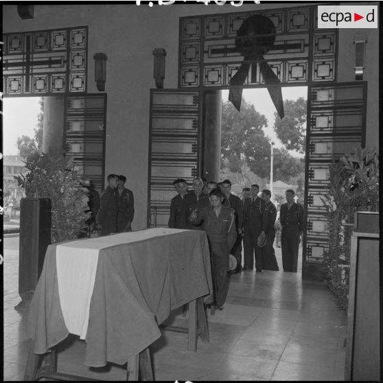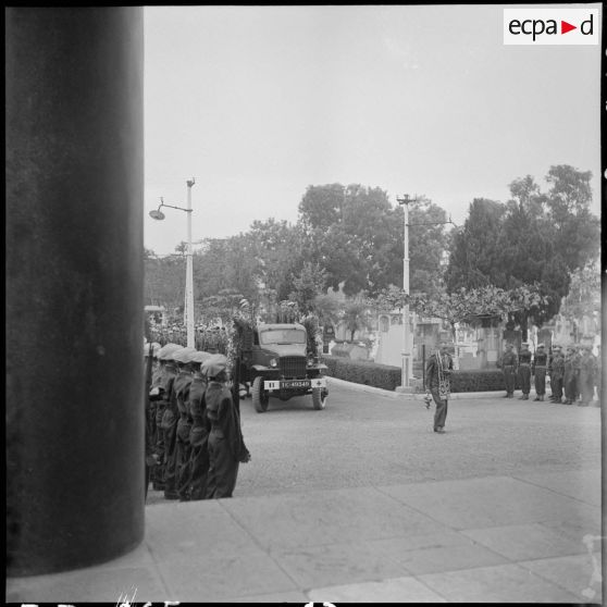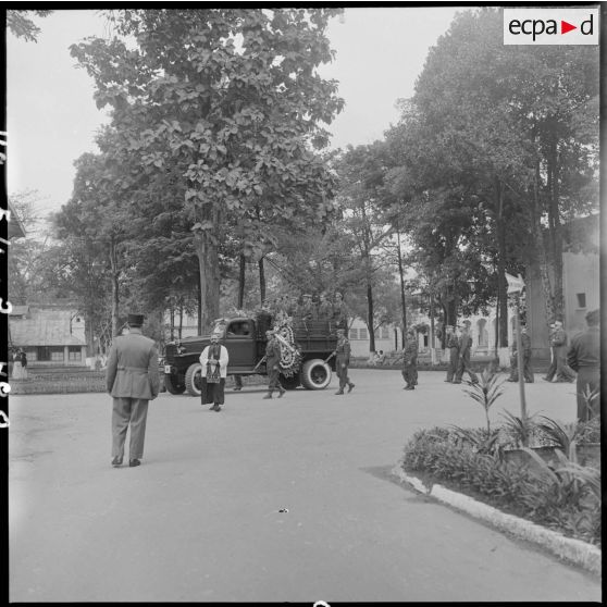 Le convoi funéraire des obsèques du capitaine Duche du 1er RC (régiment de chasseurs) est arrivé au cimetière d'Hanoï.